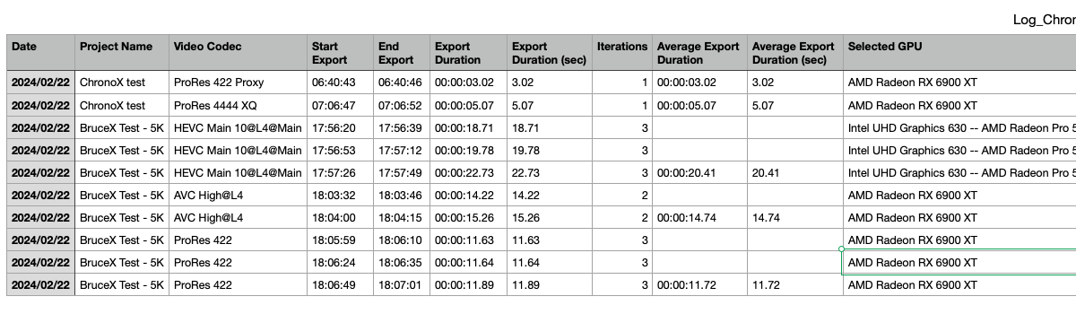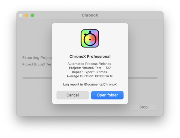 A log report file in CSV format is created on daily basis in /Documents/ChronoX with data of each export.